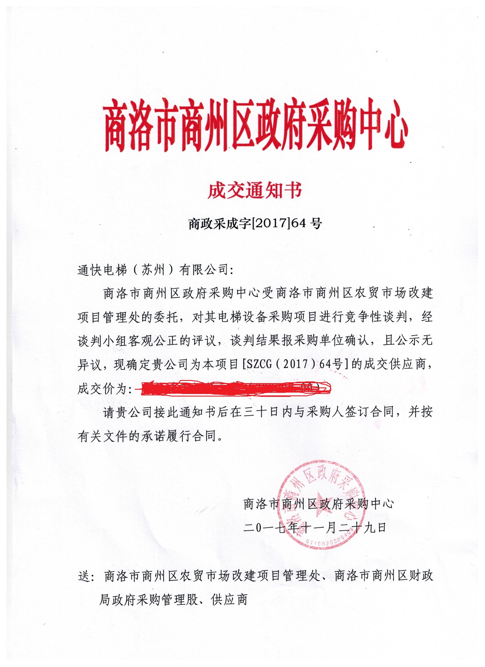 商洛市商州區(qū)農(nóng)貿(mào)市場改建項(xiàng)目管理處電梯中標(biāo)